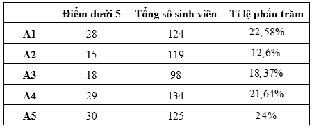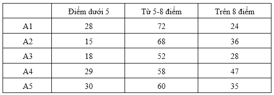 Dưới đây là bảng điểm của cuối kì của 5 lớp sinh viên tại trường X.