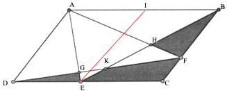 - Diện tích phần tô đậm = $= \left( {S_{ADE} + S_{BCE}} \right) - S_{ADG} - S_{KHF}$