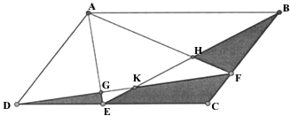 Cho hình bình hành ABCD có diện tích bằng 200 cm2. Biết diện tích tam giác HKF bằng 13 cm2, diện tích tam giác ADG bằng 40 cm2. Tính diện tích phần tô đậm theo đơn vị cm2.