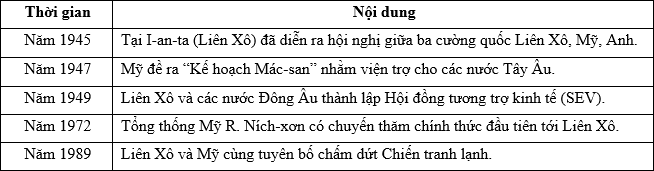 | d) Bảng thông tin trên thể hiện những sự kiện diễn ra trong thời kì Chiến tranh lạnh. |