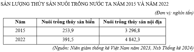 Nhận xét nào sau đây đúng với tình hình sản lượng thủy sản nuôi trồng nước ta giai đoạn 2015 - 2022?