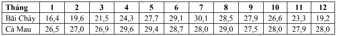 | b) Năm 2023, Bãi Cháy có 3 tháng lạnh, Cà Mau có 1 tháng lạnh. | ||