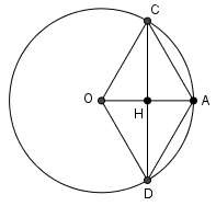 Cho đường tròn $(O)$ có bán kính $OA$, dây $CD$ là đường trung trực của $OA$. Tứ giác $OCAD$ là hình gì?
