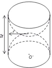 Một khối gỗ dạng hình trụ, bán kính đường tròn đáy $r = 10~\text{cm}$, chiều cao $h = 20~\text{cm}$. Người ta khoét rỗng hai nửa hình cầu (như hình vẽ).