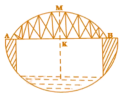 Một chiếc cầu được thiết kế như hình vẽ có $AB = 40~\text{m}$, chiều cao $MK =