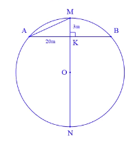 Một chiếc cầu được thiết kế như hình vẽ có $AB = 40~\text{m}$, chiều cao $MK = 3~\text{m}$. Tính bán kính của đường tròn chứa cung $AMB$ biết $MK$ đi qua tâm của đường tròn chứa cung $AMB$ (làm tròn kết quả đến chữ số thập phân thứ nhất)