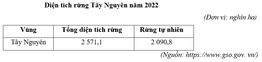 => Diện tích rừng trồng = Tổng diện tích rừng – Diện tích rừng tự nhiên