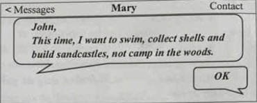 John, lần này, mình muốn bơi, thu thập vỏ sò và xây lâu đài cát chứ không phải cắm trại trong rừng.