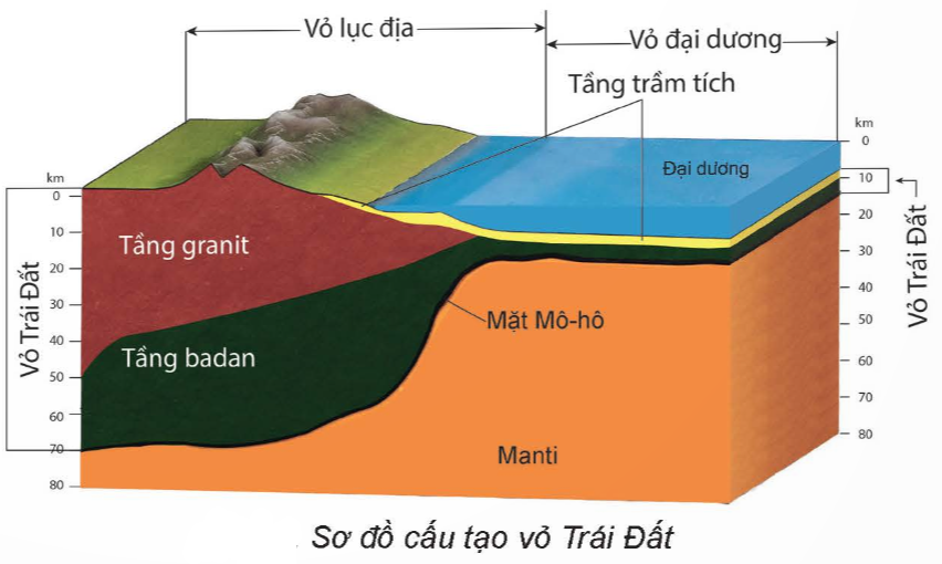 Dựa vào nội dung đặc điểm của vỏ Trái Đất.