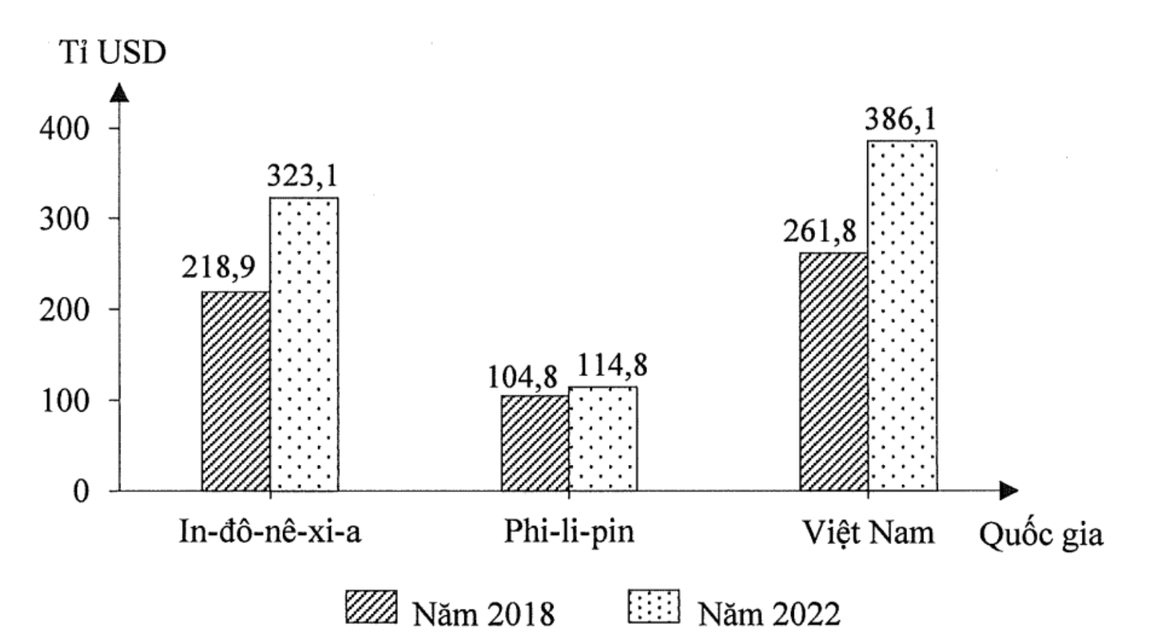 | a) Năm 2022 so với năm 2018, trị giá xuất khẩu hàng hóa và dịch vụ của Phi-li-pin tăng nhanh hơn Việt Nam. | ||