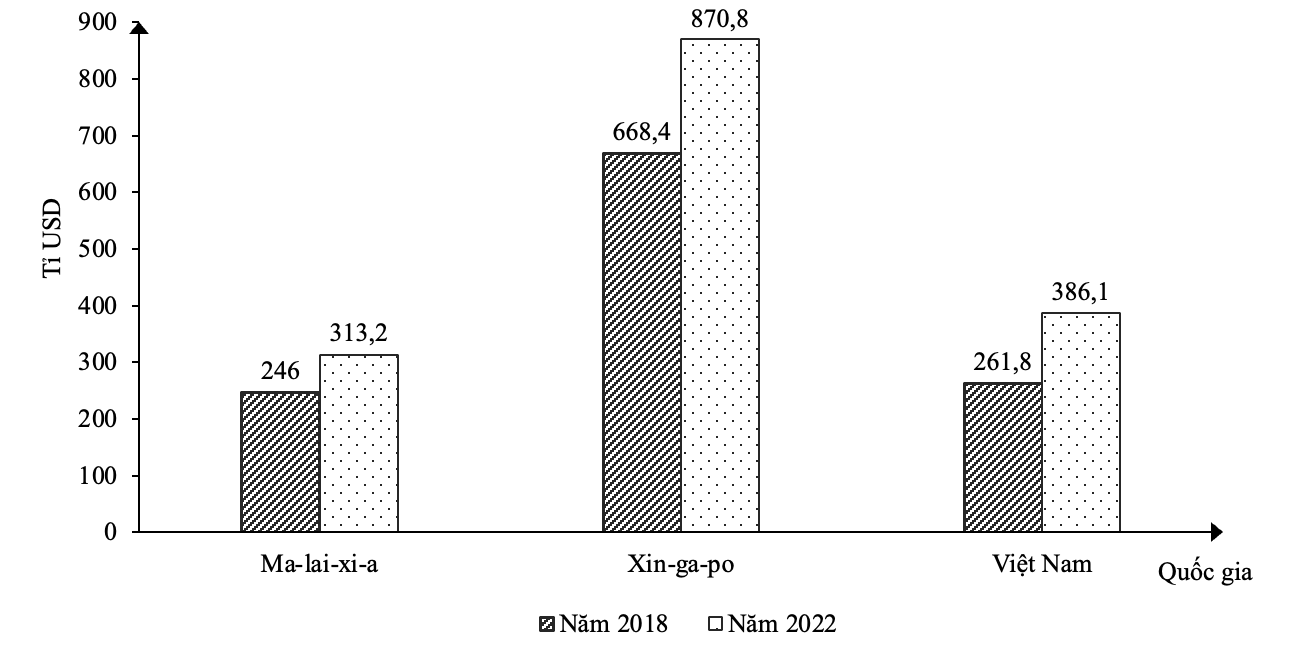 Trị giá xuất khẩu hàng hóa và dịch vụ của một số quốc gia Đông Nam Á năm 2018 và 2022