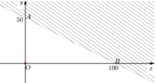 Một công ty viễn thông tính phí 1 nghìn đồng mỗi phút gọi nội mạng và 2 nghìn đồng mỗi phút gọi ngoại mạng. Gọi \(x\) và \(y\) lần lượt là số phút gọi nội mạng, ngoại mạng của Bình trong một tháng và Bình muốn số tiền phải trả cho tổng đài luôn thấp hơn 100 nghìn đồng. Khi đó:
