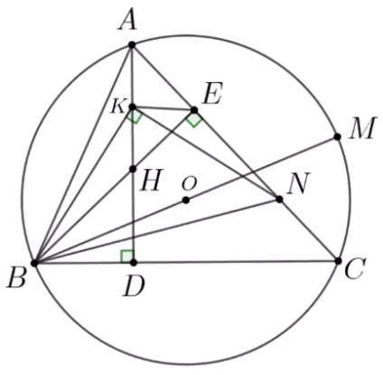 a) Chứng minh $CDHE$ và $BKEN$ là các tứ giác nội tiếp