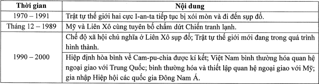 | b) Theo bảng thông tin trên, vào những năm 90 của thế kỉ XX, trật tự thế giới mới đang hình thành. | ||