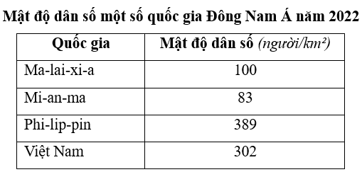 Dựa vào bảng số liệu, hãy nhận xét và giải thích sự phân bố dân cư của khu vực Đông Nam Á năm 2022.
