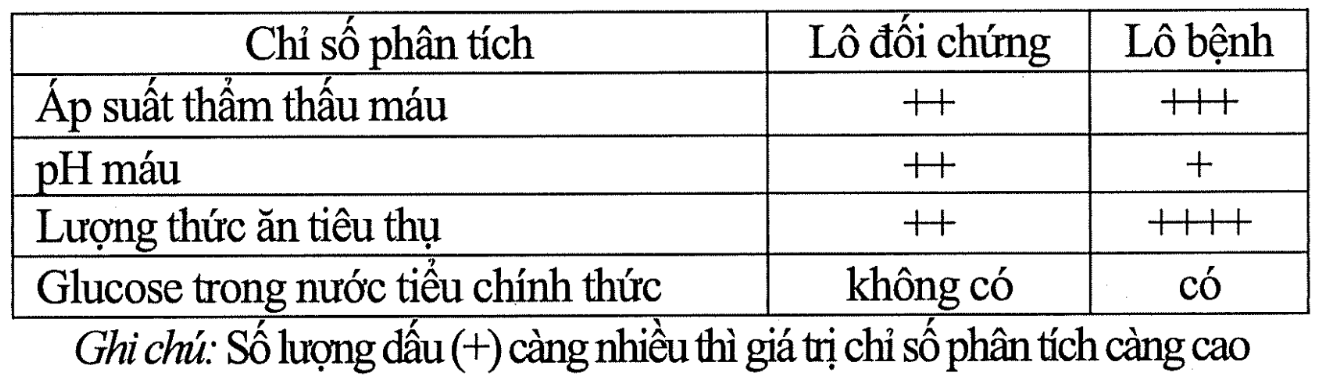 + Trong nước tiểu chính thức của chuột lô bệnh có glucose (bị tiểu đường), lô đối chứng không có (không bị tiểu đường).