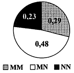 Ở người, hệ nhóm máu MN được quy định bởi 2 allele đồng trội M và N. Biểu đồ bên thể