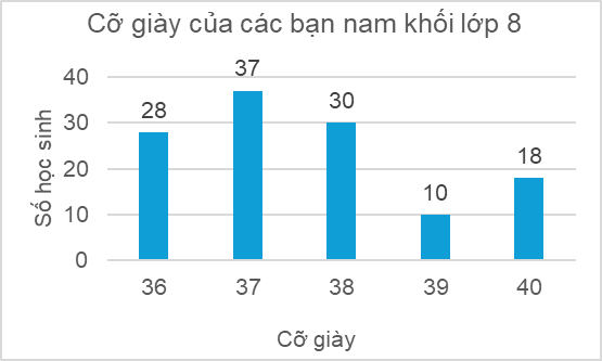 Biểu đồ bên dưới biểu diễn cỡ giày của học sinh nam khối 9 ở trường $X$.