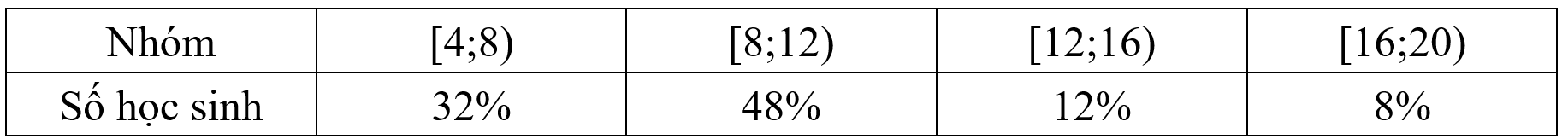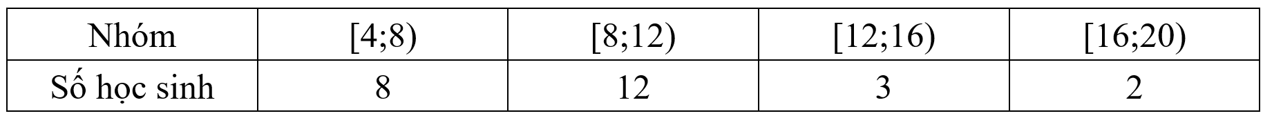 a) Kết quả thu thập điểm số môn Toán của 25 học sinh khi tham gia ki thi học sinh giỏi toán 9 (thang điểm 20) cho ta bảng tần số ghép nhóm sau: