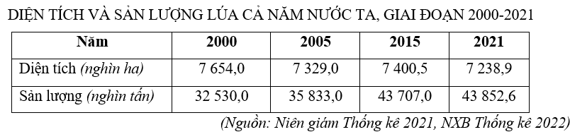 Cho bảng số liệu: Căn cứ vào bảng số liệu trên, cho biết năm 2021 năng suất