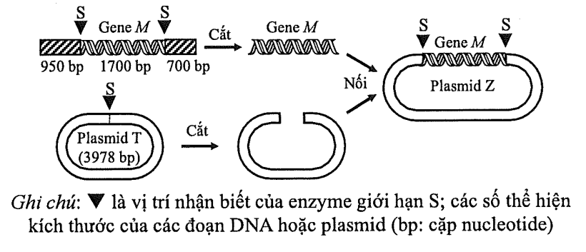 Công nghệ DNA tái tổ hợp đã có nhiều thành tựu đột pha, như tạo sinh vật biến đổi gene. Hình bên thể hiện các bước tạo DNA tái tổ hợp; trong đó, gene M của một loài nấm sợi được nối với vector plasmid T để tạo thành plasmid Z.