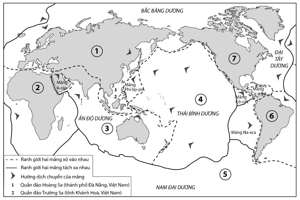 Dựa vào lược đồ đề bài đã cho và lược đồ các mảng kiến tạo dưới đây: