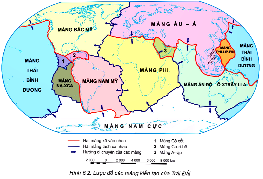 Cho sơ đồ sau và trả lời 3 câu hỏi bên dưới: Lược đồ các mảng kiến tạo lớn của
