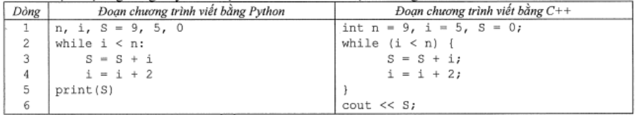 Lựa chọn ngôn ngữ Python hoặc C++ để tìm hiểu đoạn chương trình sau: