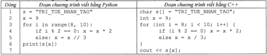 Lựa chọn ngôn ngữ Python hoặc C++ để tìm hiểu đoạn chương trình sau: Sau khi thực hiện
