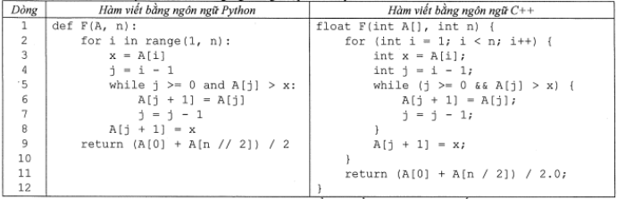 Cho hàm sau đây được viết bằng ngôn ngữ lập trình Python và C++: