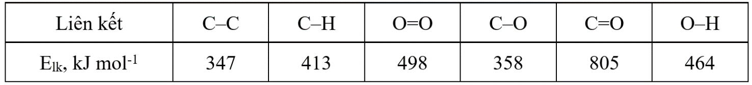 b) Sử dụng giá trị năng lượng liên kết trung bình (Eb) cho trong bảng dưới đây, tính nhiệt lượng tỏa ra khi đốt cháy hoàn toàn 1 (L) xăng E5. Biết khối lượng riêng của C8H18 và ethanol lần lượt là 0,703 g/cm3 và 0,789 g/cm3.