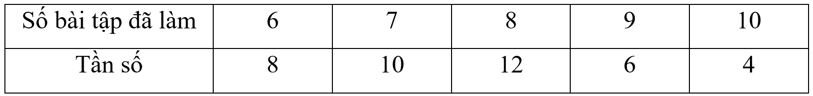 a) Số bài tập về nhà môn Toán đã làm của 40 học sinh trong lớp 9A vào tuần trước được thống kê trong bảng tần số sau:
