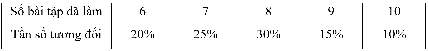Lập bảng tần số tương đối của bảng số liệu trên.