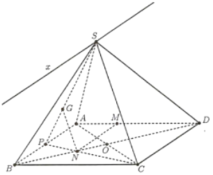 | a) Giao tuyến của hai mặt phẳng \((S A B)\) và \((S C D)\) là đường thẳng đi qua S và song song với AC, BD | ||