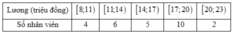 Cho bảng số liệu ghép nhóm về lương (triệu đồng) và số nhân viên như hình dưới đây. Xét