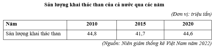 Căn cứ vào bảng số liệu trên, tính tốc độ tăng trưởng sản lượng khai thác than năm 2015 (làm tròn đến chữ số thập phân thứ nhất).