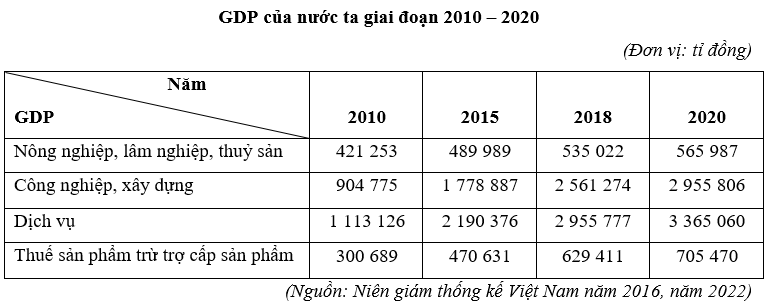 | b) Giá trị sản xuất của ngành nông nghiệp, lâm nghiệp, thuỷ sản luôn chiếm tỉ trọng thấp nhất. | ||