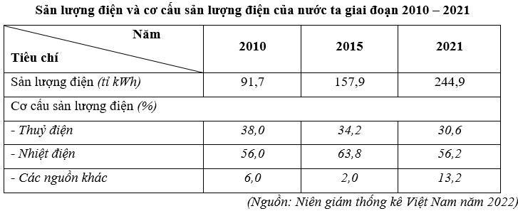 Dựa vào bảng số liệu và nội dung ngành công nghiệp sản xuất điện.
