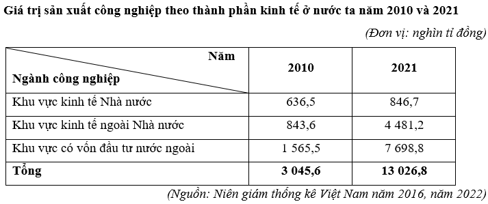 Cho bảng số liệu sau:Tỉ trọng giá trị sản xuất của khu vực kinh tế Nhà nước năm 2021 đã