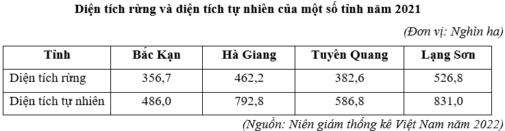 Cho bảng số liệu:Tỉ lệ diện tích rừng của tỉnh Tuyên Quang so với diện tích tự nhiên của