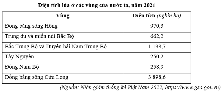 Cho bảng số liệu:Cho biết tỉ trọng diện tích lúa của Đồng bằng sông Cửu Long cao hơn Đông