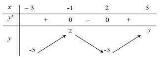 Cho hàm số $y = f(x)$ có bảng biến thiên trên $\left( {- 3;5} \right\rbrack$ như sau: