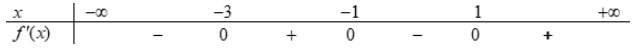 Cho hàm số $y = f(x)$ có bảng xét dấu đạo hàm như sau: