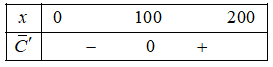 Trong một cơ sở sản xuất nước tinh khiết, nhân viên phụ trách sản xuất cho biết, nếu mỗi ngày cơ sở này sản xuất $x$ m3 nước tinh khiết thì phải chi trả các khoản sau: 5 triệu đồng chi phí cố định; 0,15 triệu đồng cho mỗi mét khối sản phẩm; $0,0005x^{2}$ chi phí bảo dưỡng máy móc. Biết công suất tối đa mỗi ngày của cơ sở này là $200m^{3}$. Gọi $C(x)$ là chi phí sản xuất $x$ ($m^{3}$) sản phẩm mỗi ngày và $\overline{C}(x)$ là chi phí trung bình mỗi mét khối sản phẩm. Khi đó: