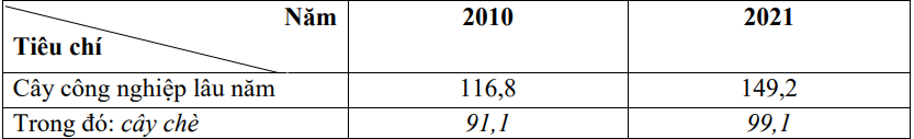 Cho bảng số liệu: Diện tích cây công nghiệp lâu năm, trong đó cây