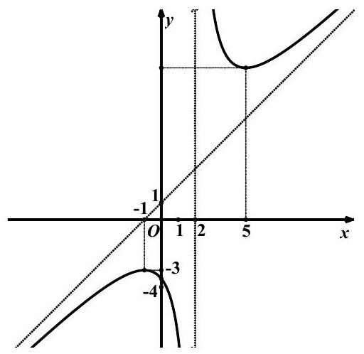 Từ hàm số xác định tiệm cận, tính đạo hàm và tìm các điểm cực trị từ đó vẽ đồ thị hàm số.