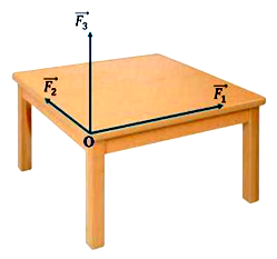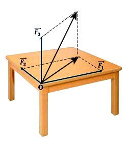 Có ba lực $_{1},{\overset{\rightarrow}{\text{F}}}_{2},{\overset{\rightarrow}{\text{F}}}_{3}$ đôi một vuông góc với nhau cùng tác động vào một điểm O trên mặt bàn (quan sát hình vẽ). Biết ba lực $\overset{\rightarrow}{\text{F}_{1}},\overset{\rightarrow}{\text{F}_{2}},\overset{\rightarrow}{\text{F}_{3}}$ có độ lớn lần lượt là $8\text{N},3\text{~N},6\text{N}$. Hợp lực của ba lực trên có độ lớn là bao nhiêu Newton? (làm tròn kết quả đến chữ số thập phân thứ nhất)