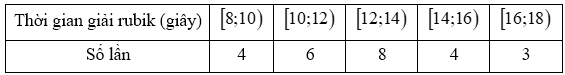 Bạn An là học sinh rất giỏi chơi Rubic, bạn có thể giải nhiều loại Rubic khác nhau. Trong một lần luyện tập giải khối Rubic $3 \times 3$, bạn An đã tự thống kê lại thời gian giải Rubic trong 25 lần giải liên tiếp ở bảng sau
