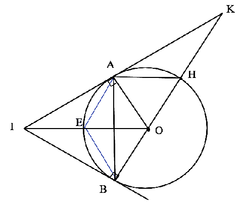 Vì vậy 4 điểm $A,I,B,O$ cùng nằm trên một đường tròn tâm $E$