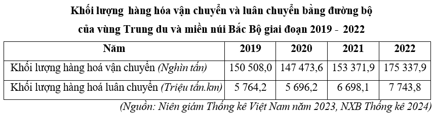 Căn cứ vào bảng số liệu trên, hãy cho biết trong giai đoạn 2019 – 2022, tốc độ tăng trưởng cự li vận chuyển trung bình của vùng Trung du và miền núi Bắc Bộ tăng bao nhiêu %? (Làm tròn kết quả đến chữ số thập phân thứ nhất)